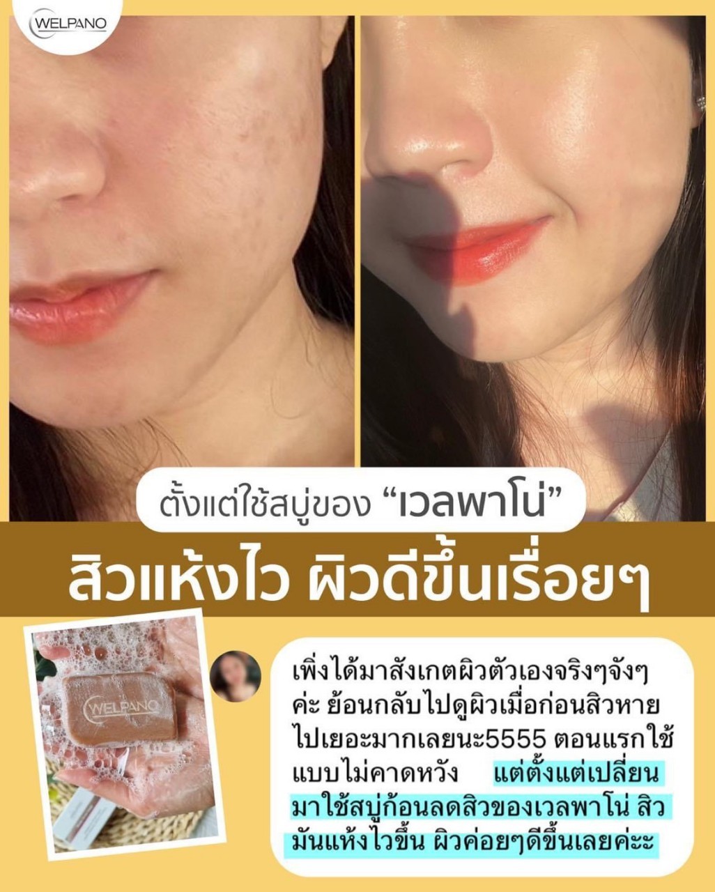 สิวที่ตัว โดยเฉพาะสิวหลัง สิวอก เป็นปัญหาที่หลายคนเจอซ้ำ ๆ Welpano Body Acne Soap สบู่ทำความสะอาดผิวที่ออกแบบมาเพื่อผิวที่มีแนวโน้มเป็นสิวง่ายโดยเฉพาะ จุดเด่นคือมีส่วนผสมอย่าง Sulfur และสารสกัดจากธรรมชาติ ที่ช่วยลดความมันส่วนเกินและจัดการแบคทีเรีย ซึ่งเป็นหนึ่งในสาเหตุของสิวได้อย่างมีประสิทธิภาพ