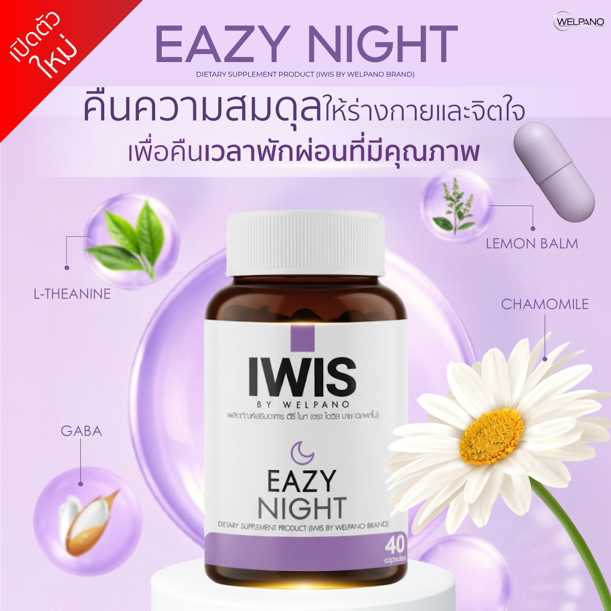 ซึ่งวิตามินนี้มีสารสกัดจากธรรมชาติเช่น Lemon Balm และ Chamomile ที่มีงานวิจัยรองรับ ช่วยปรับสมดุลสมองและจิตใจ ให้รู้สึกสงบ คลายความเครียด และเตรียมความพร้อมก่อนนอน เมื่อร่างกายจิตใจเราผ่อนคลายจึงช่วยให้หลับลึก หลับสบาย ตื่นมาสดชื่น ไม่มึน ไม่เพลีย เหมือนได้พักผ่อนเต็ม 100% ซึ่ง IWIS Eazy Night เป็นวิตามินเสริม ไม่ใช่ยา ช่วยเสริมให้ร่างกายพร้อมรับการพักผ่อนที่ดี เพื่อเช้าวันใหม่ที่สดใสกว่าเดิมค่ะ
