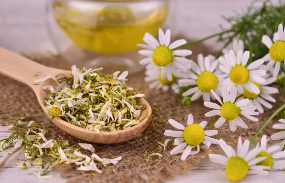 3) Chamomile – ช่วยให้หลับดี และปลอบประโลมทั้งระบบประสาท–ผิว–ร่างกาย